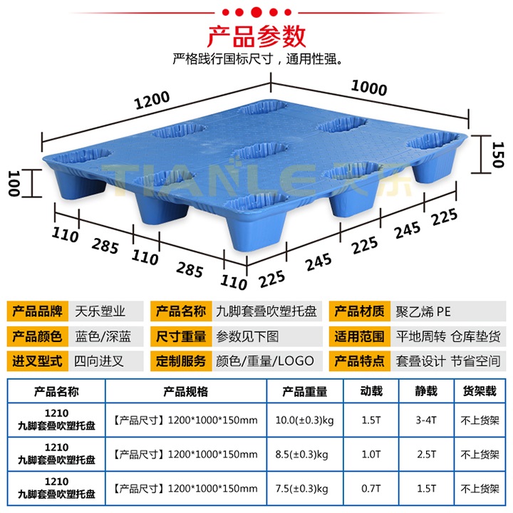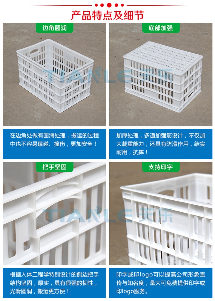 發展中的天樂總是給您驚喜不斷,5月份,公司新增設備——吹塑機老三,又推出網紅輕型九腳吹塑托盤(1.2*1m;1.1*1.1m兩款尺寸),7月初,天樂公司再次推出1*0.8m九腳平板托盤以及水果蔬菜運輸存儲好幫手——果蔬筐,果蔬筐1萬個訂單正在井然有序生產,歡迎新老客戶、合作伙伴、業界同仁咨詢下單。